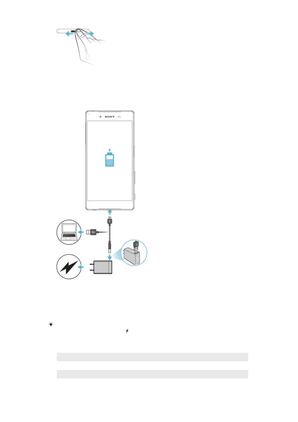 Plug one end of the USB cable into the charger (or into the USB port of a