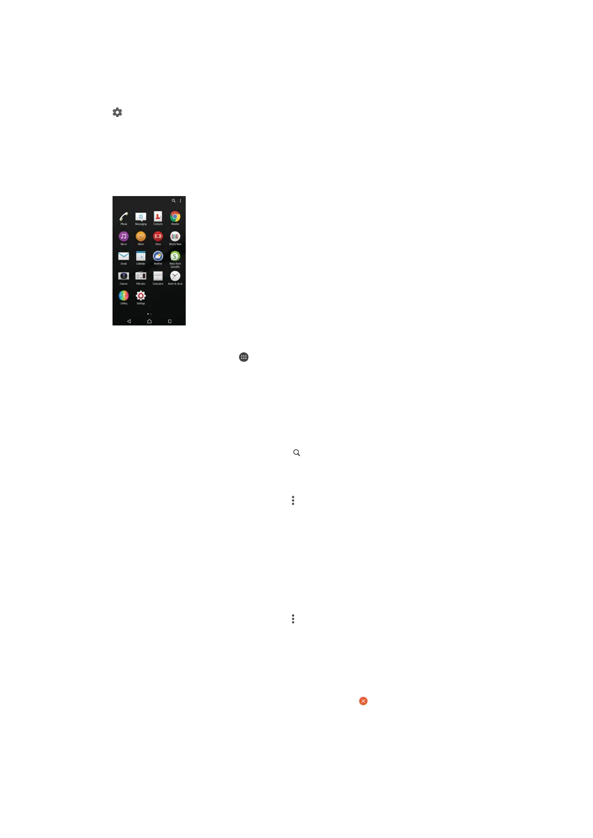 Touch and hold any area on the Application screen until the device vibrates. All