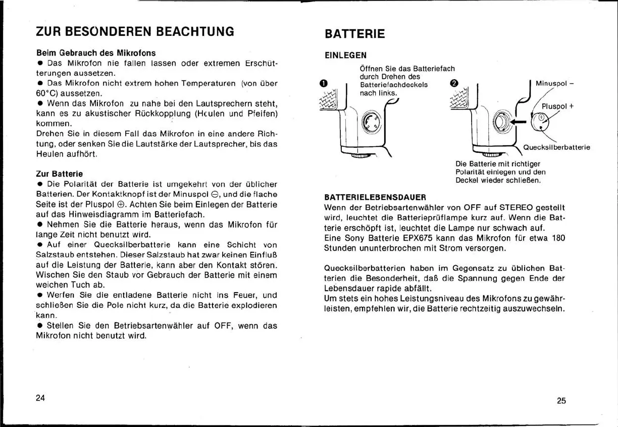 • Nehmen Sie die Ballerie heraus, wenn das Mikrofon