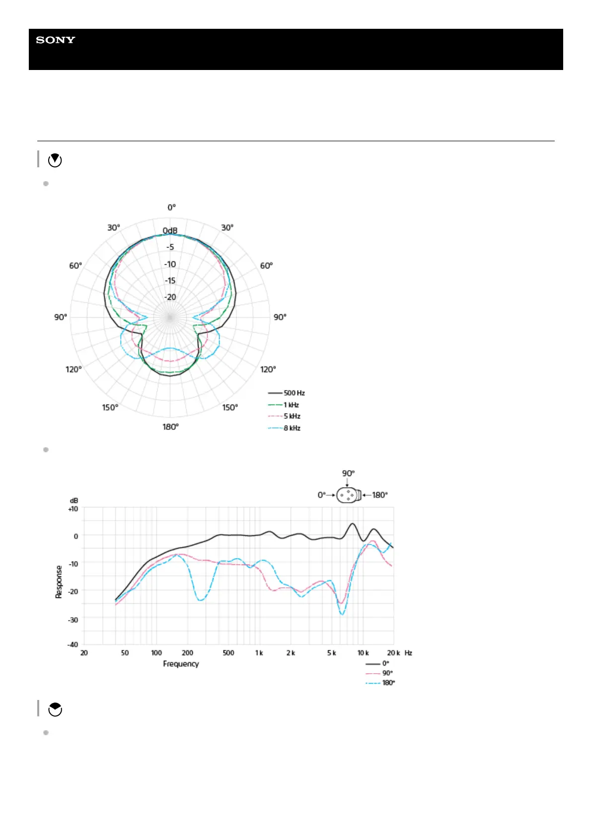 Sony ECM-M1 - About the pickup pattern and the frequency response; Super-directional pickup pattern and frequency response; Uni-directional pickup pattern and frequency response