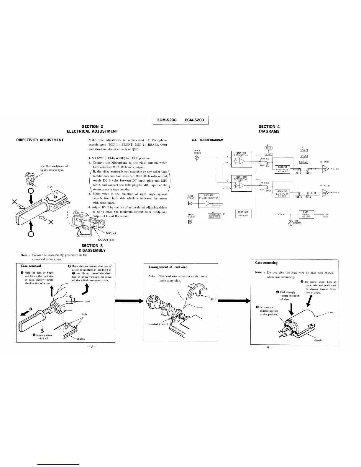 Sony ECM-S200 - Section 2 Electrical Adjustment; Directivity Adjustment; Section 3 Disassembly; Case Removal