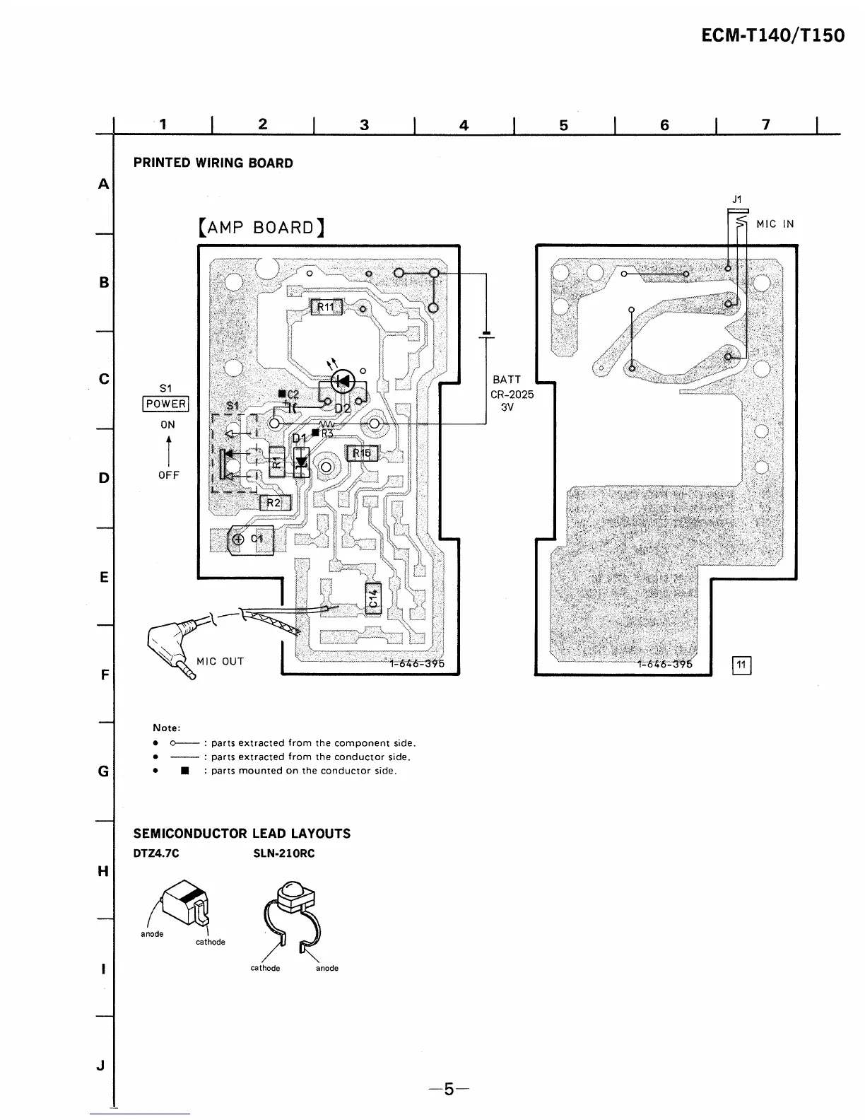 Sony ECM-T140 - Printed Wiring Board; Semiconductor Lead Layouts