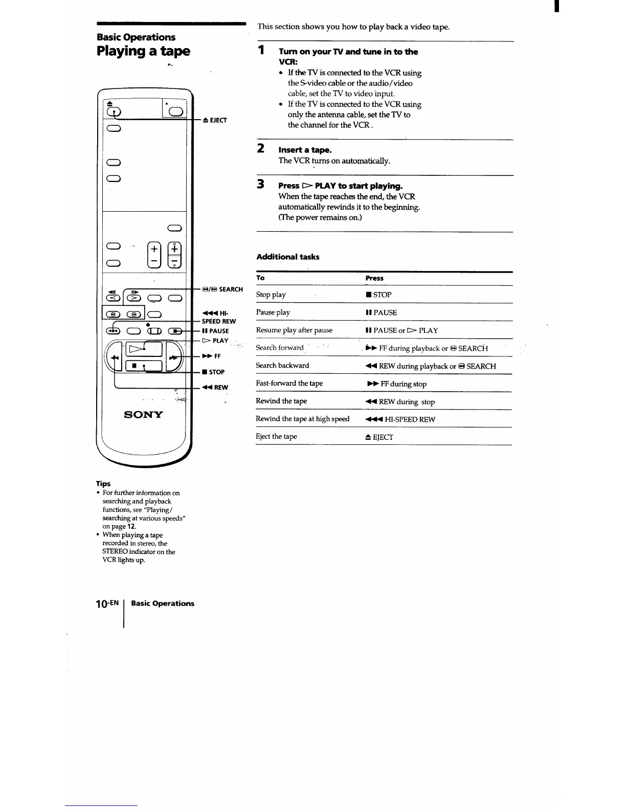 Sony EV-C200 - Basic Operations; Playing a Tape