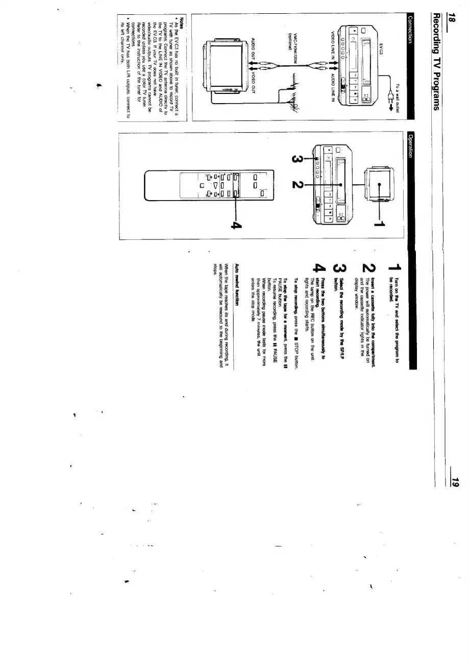 Sony EV-C3 - Remote Commander; Battery Installation; Remote Control Functions; Remote Operating Range