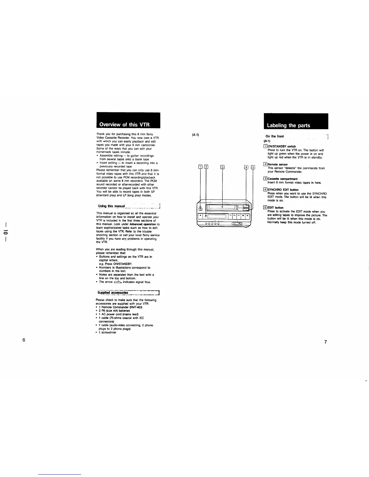 Sony EV-C3E - Overview of this VTR; Labeling the Parts; Supplied Accessories
