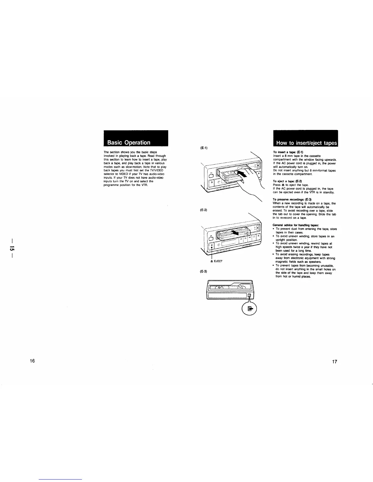 Sony EV-C3E - Basic VTR Operation; Inserting and Ejecting Tapes