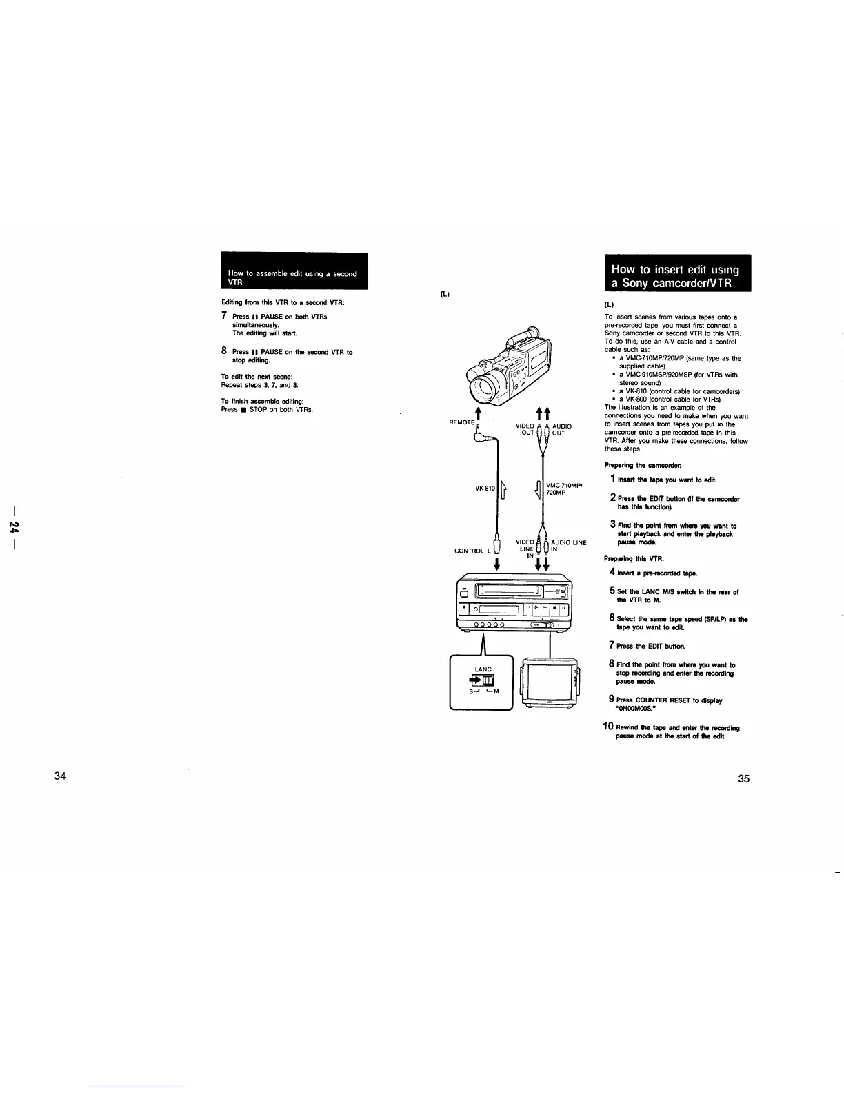 Sony EV-C3E - Advanced Assemble Editing; Assemble Editing Between VTRs