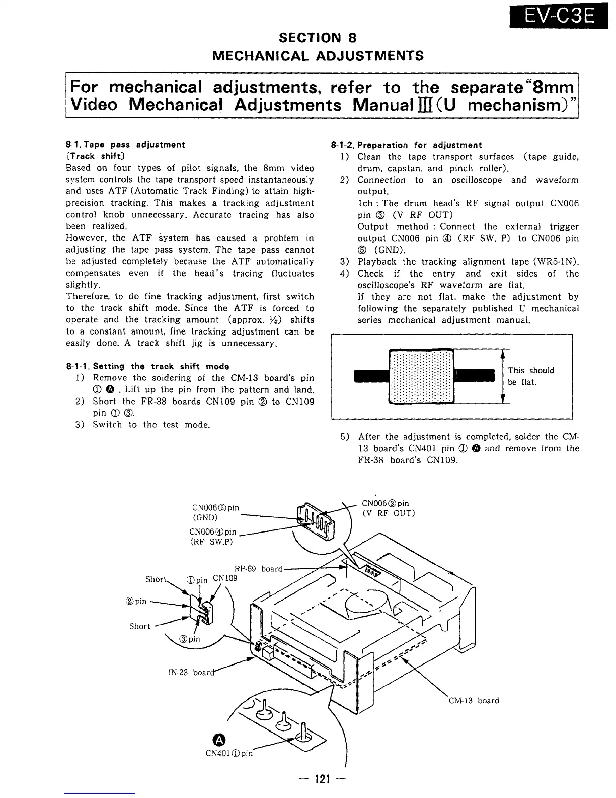 Sony EV-C3E - Mechanical Adjustment: Tape Pass; Tape Pass Adjustment Overview; Setting Track Shift Mode