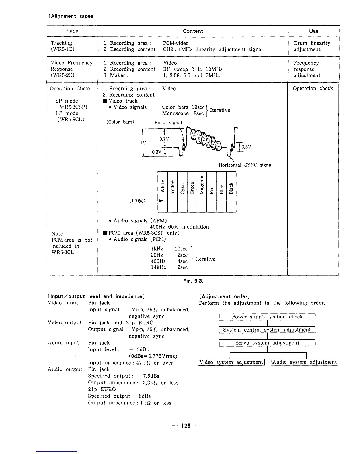 Sony EV-C3E - Electrical Adjustment Details; Alignment Tapes and Signal Checks; Adjustment Order and I;O Specs