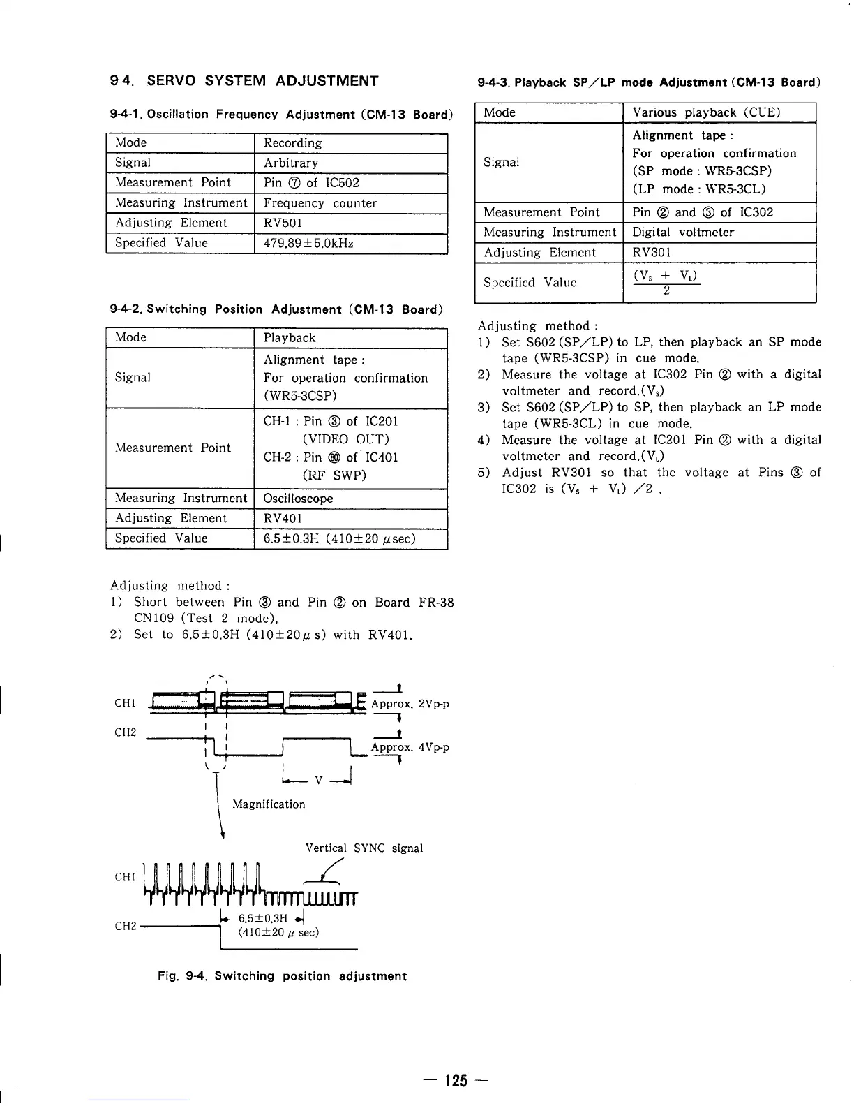 Sony EV-C3E - Servo System Adjustments; Oscillation Frequency and Switching Position; Playback SP;LP Mode Adjustment