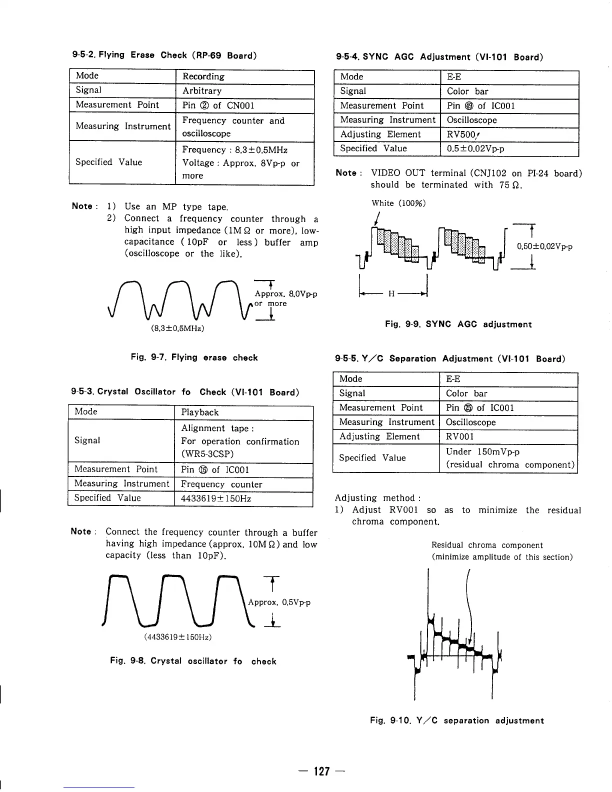 Sony EV-C3E - Video System Adjustments (Part 2); Crystal Oscillator and SYNC AGC Checks; Y;C Separation Adjustment