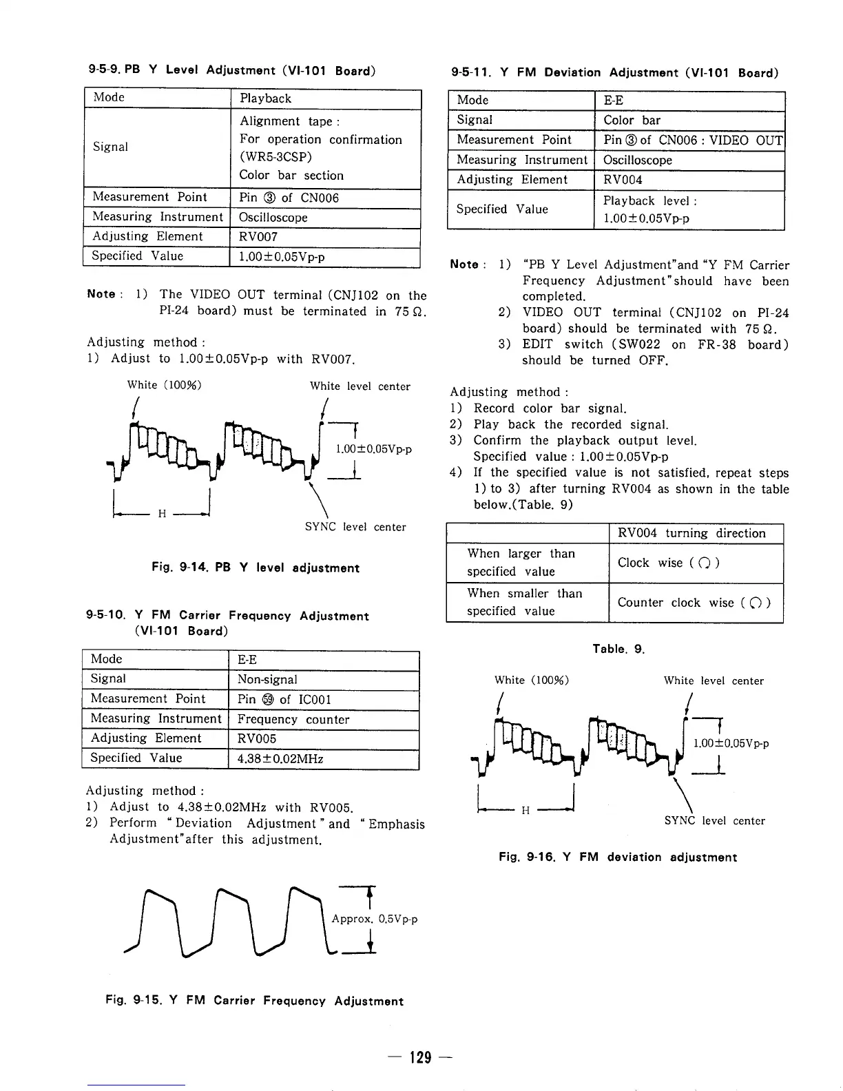 Sony EV-C3E - Video System Adjustments (Part 4); PB Y Level and Y FM Carrier Adjustments; Y FM Deviation Adjustment