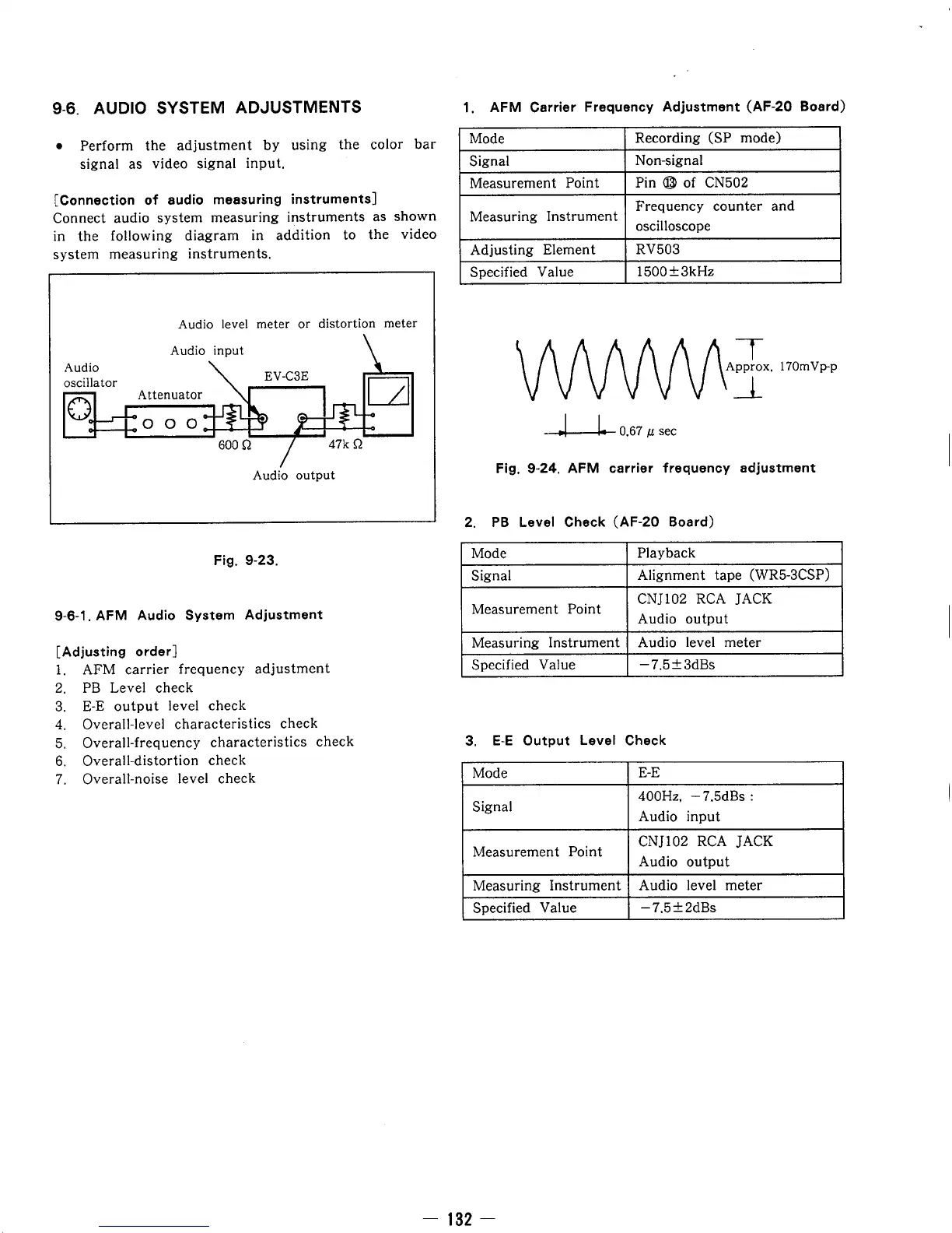 Sony EV-C3E - Audio System Adjustments (Part 1); AFM Carrier Frequency Adjustment; PB Level and E-E Output Checks