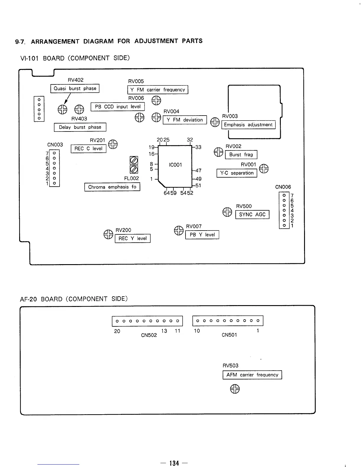 Sony EV-C3E - Arrangement Diagram for Adjustment Parts; VI-101 Board (Component Side); AF-20 Board (Component Side)