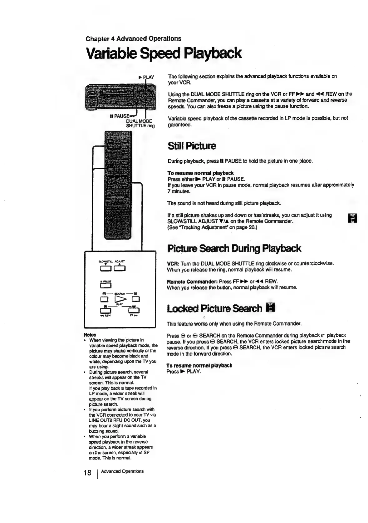 Sony EV-C500E - Chapter 4 Advanced Operations; Variable Speed Playback; Still Picture and Picture Search; Locked Picture Search