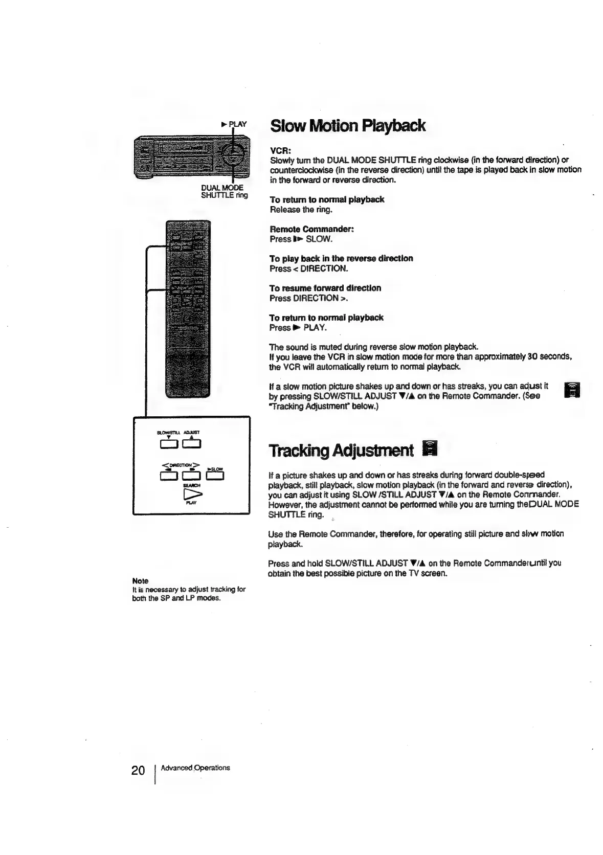 Sony EV-C500E - Slow Motion Playback; Tracking Adjustment