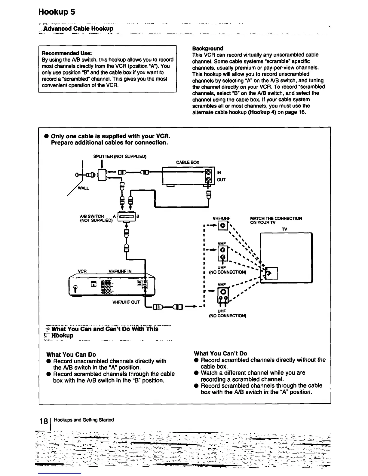 Sony EV-S2000 - Hookup 5: Advanced Cable Hookup; Connecting with A;B Switch and Cable Box; Hookup Capabilities