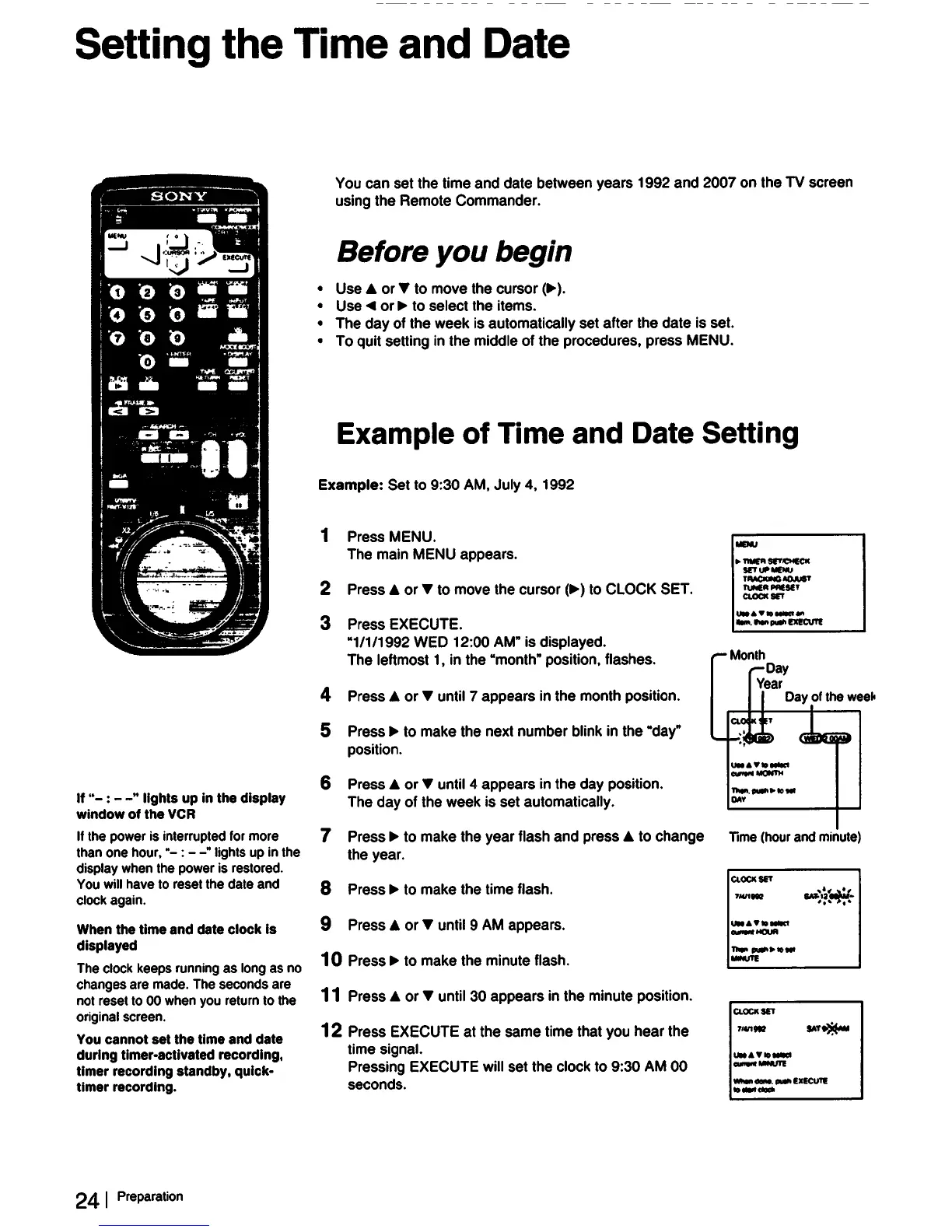 Sony EV-S2000 - Setting the VCRs Time and Date