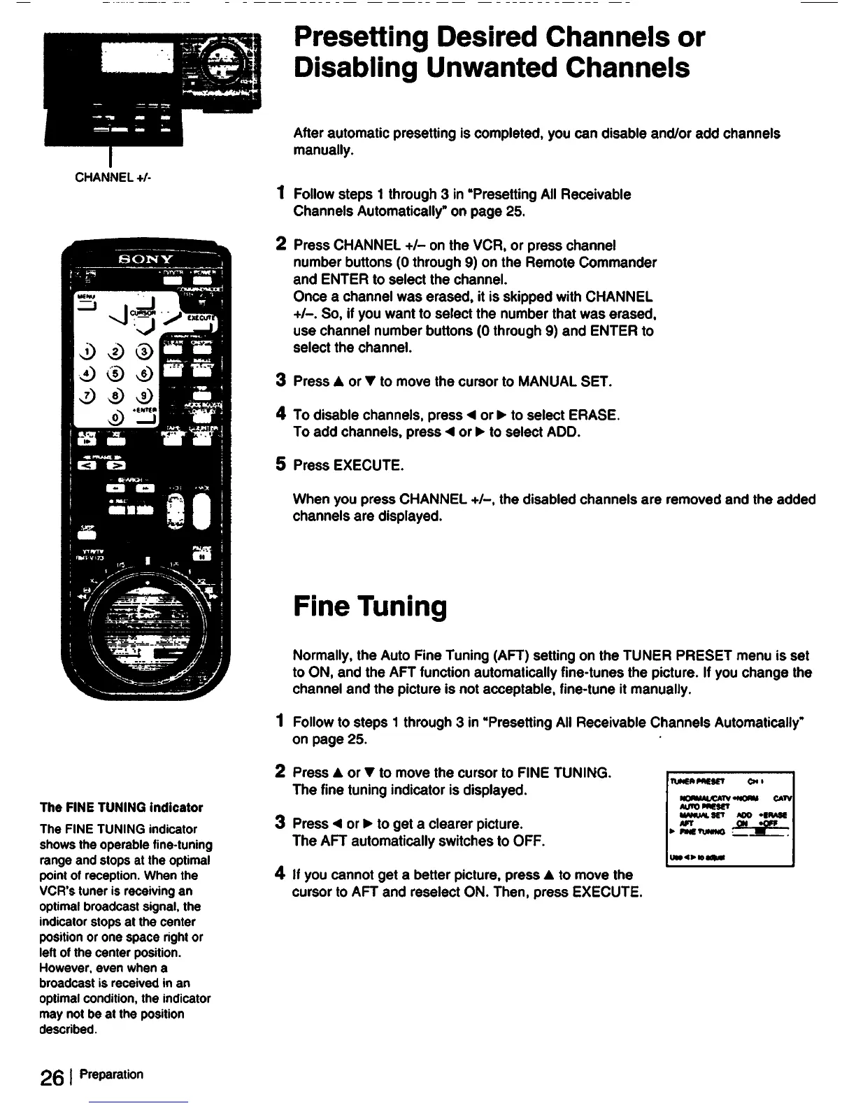 Sony EV-S2000 - Customizing Channel Presets; Adding or Disabling Channels; Fine Tuning Pictures