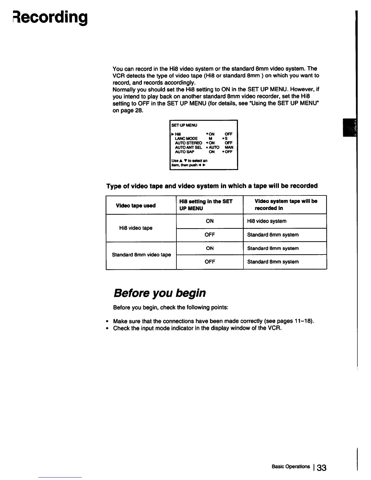 Sony EV-S2000 - Recording Basics; Video Tape and System Compatibility