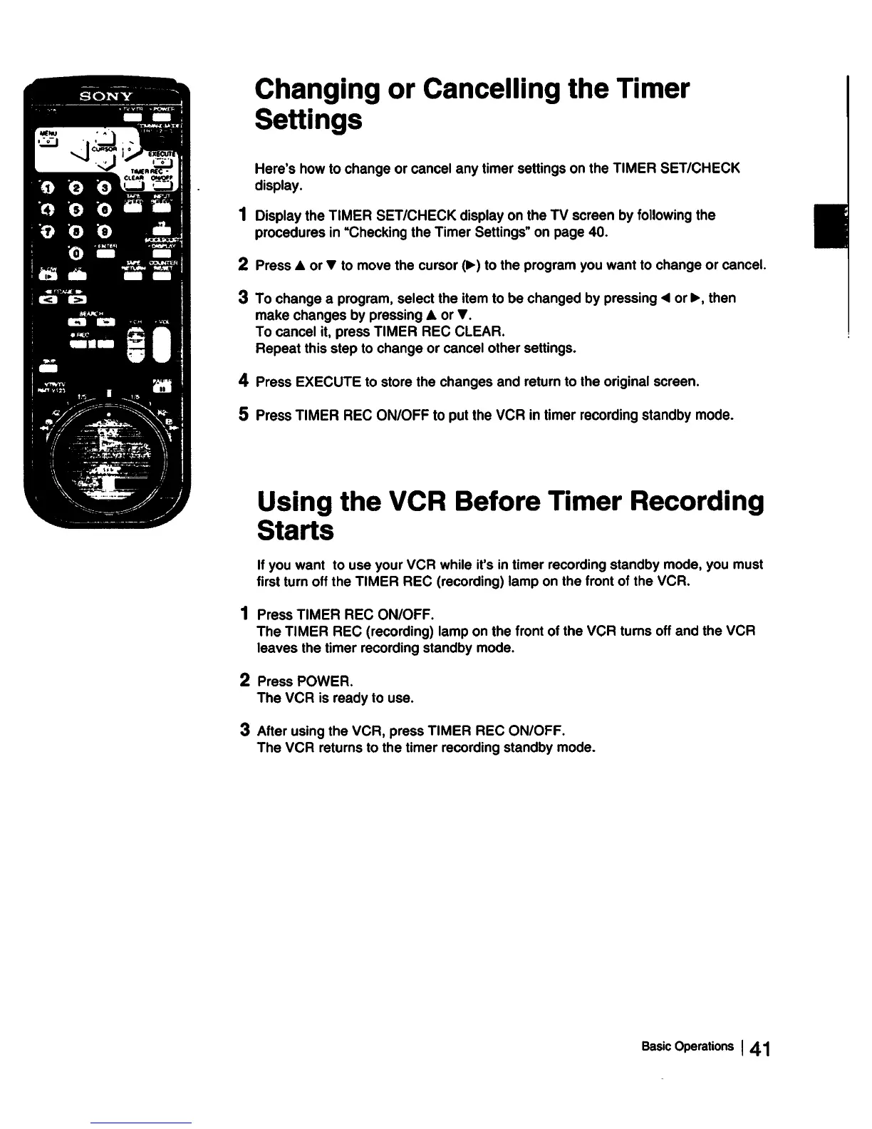 Sony EV-S2000 - Modifying Timer Settings; Changing or Cancelling Scheduled Recordings; Using VCR During Timer Standby