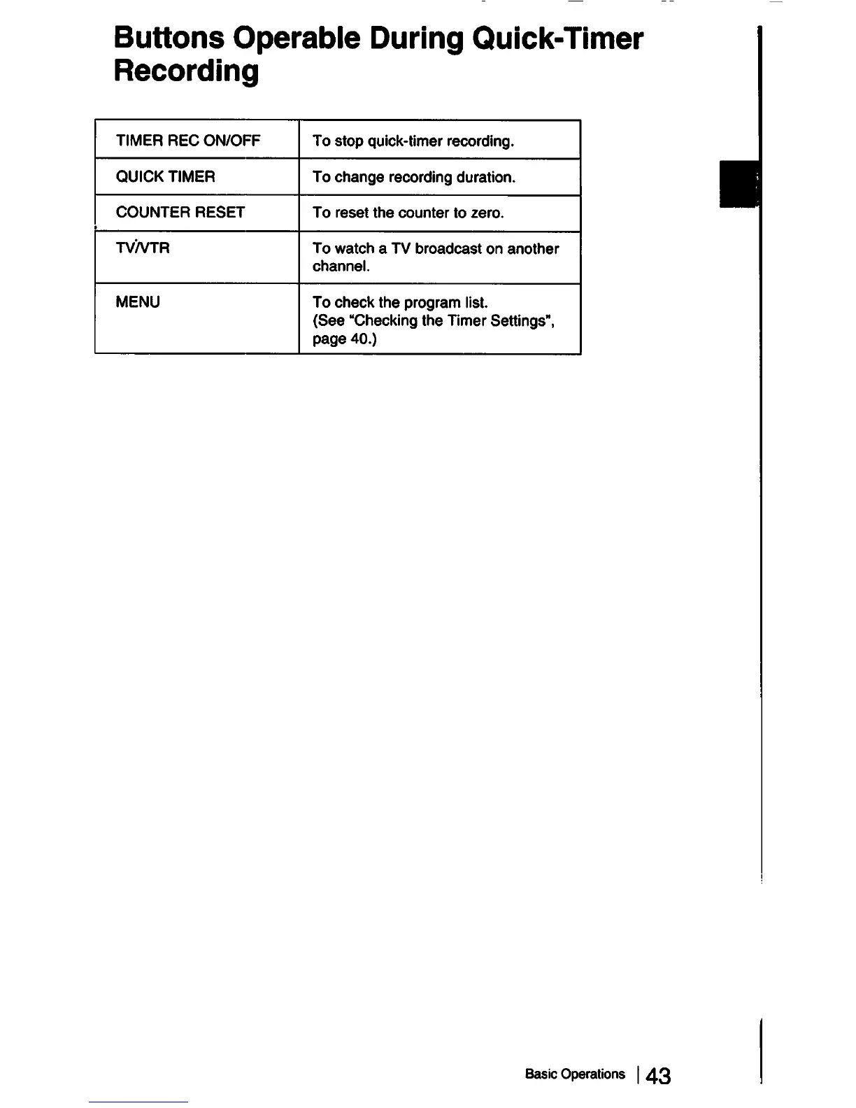 Sony EV-S2000 - Quick-Timer Recording Controls