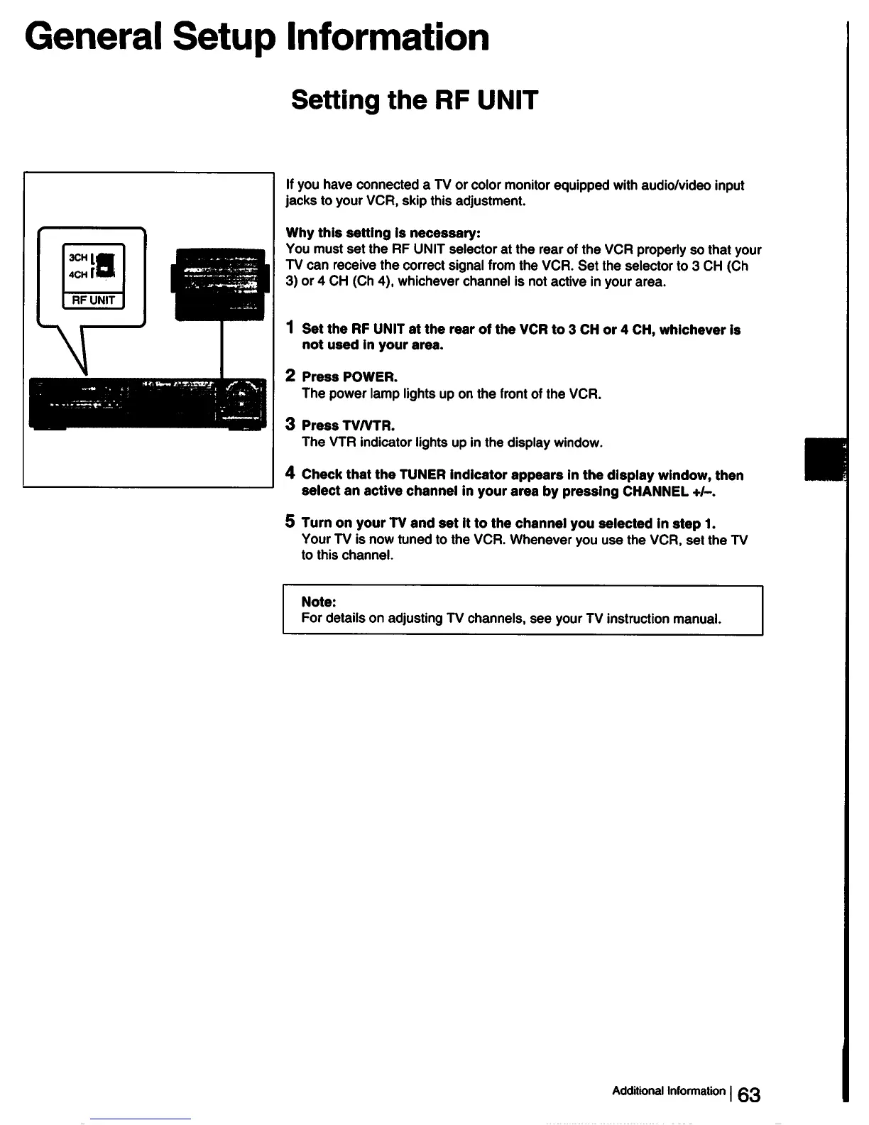 Sony EV-S2000 - General Setup Information; Setting the RF UNIT