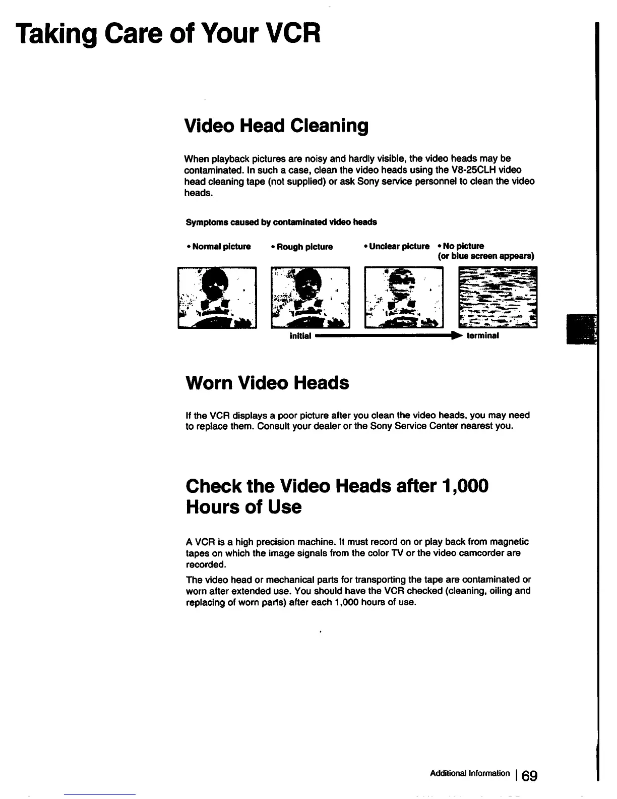 Sony EV-S2000 - VCR Maintenance; Video Head Cleaning and Care