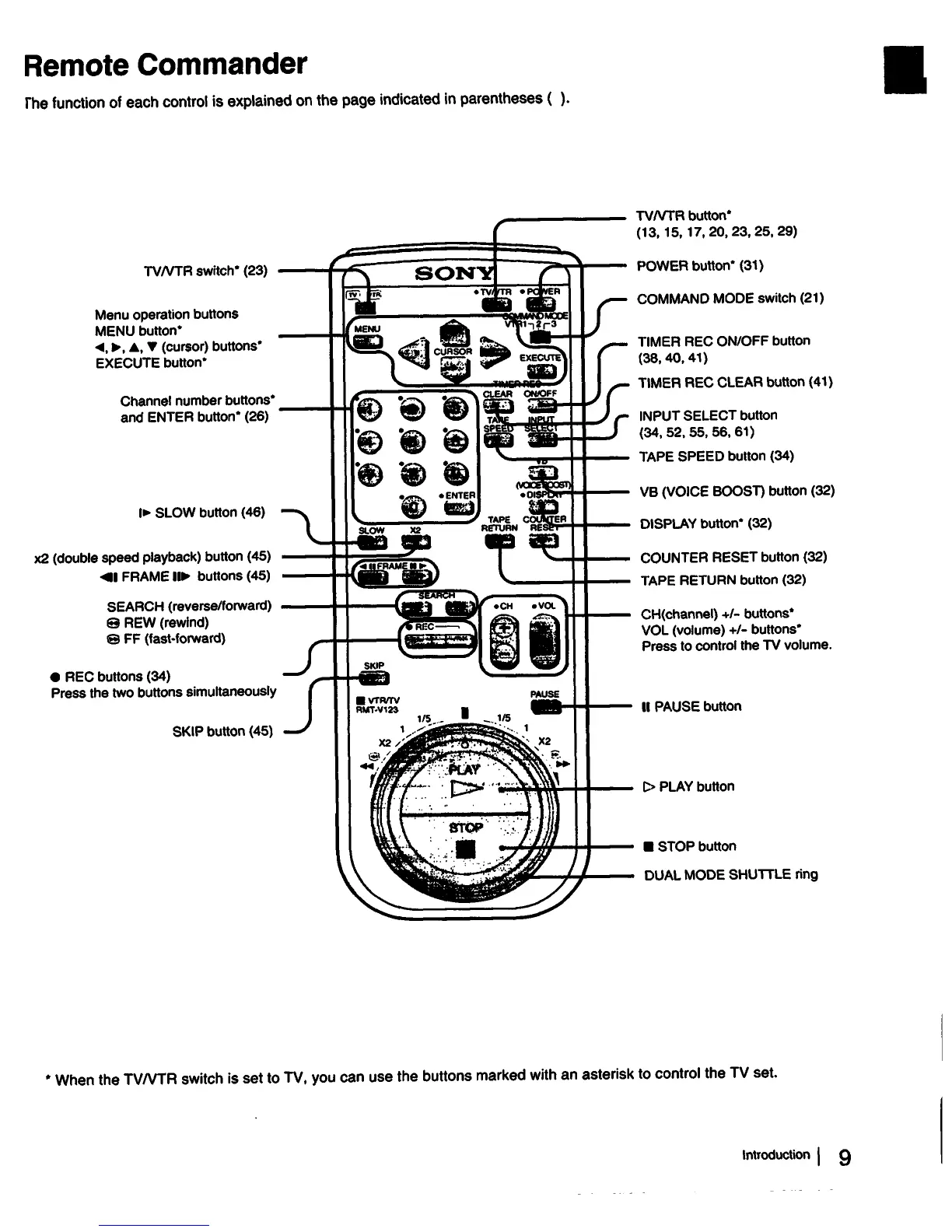 Sony EV-S2000 - Remote Commander Functions