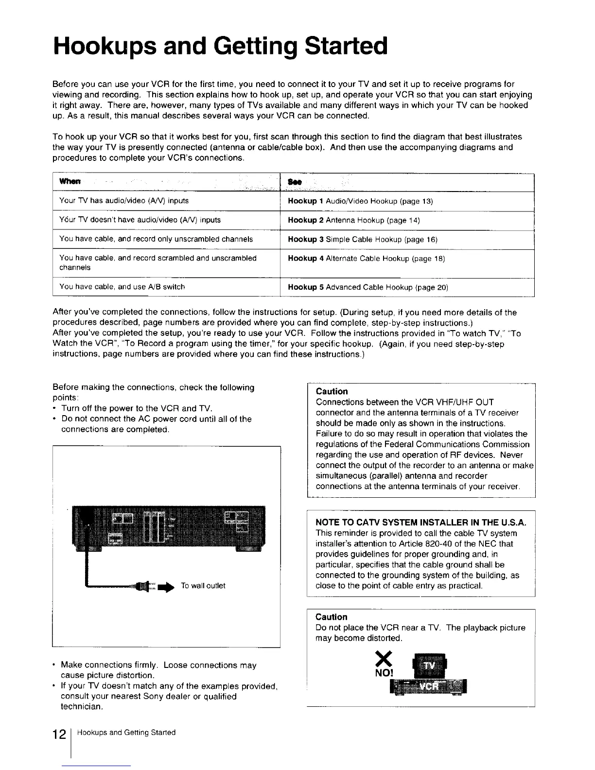Sony EV-S3000 - Hookups and Getting Started; Caution; Note to CATV System Installer in the U.S.A.
