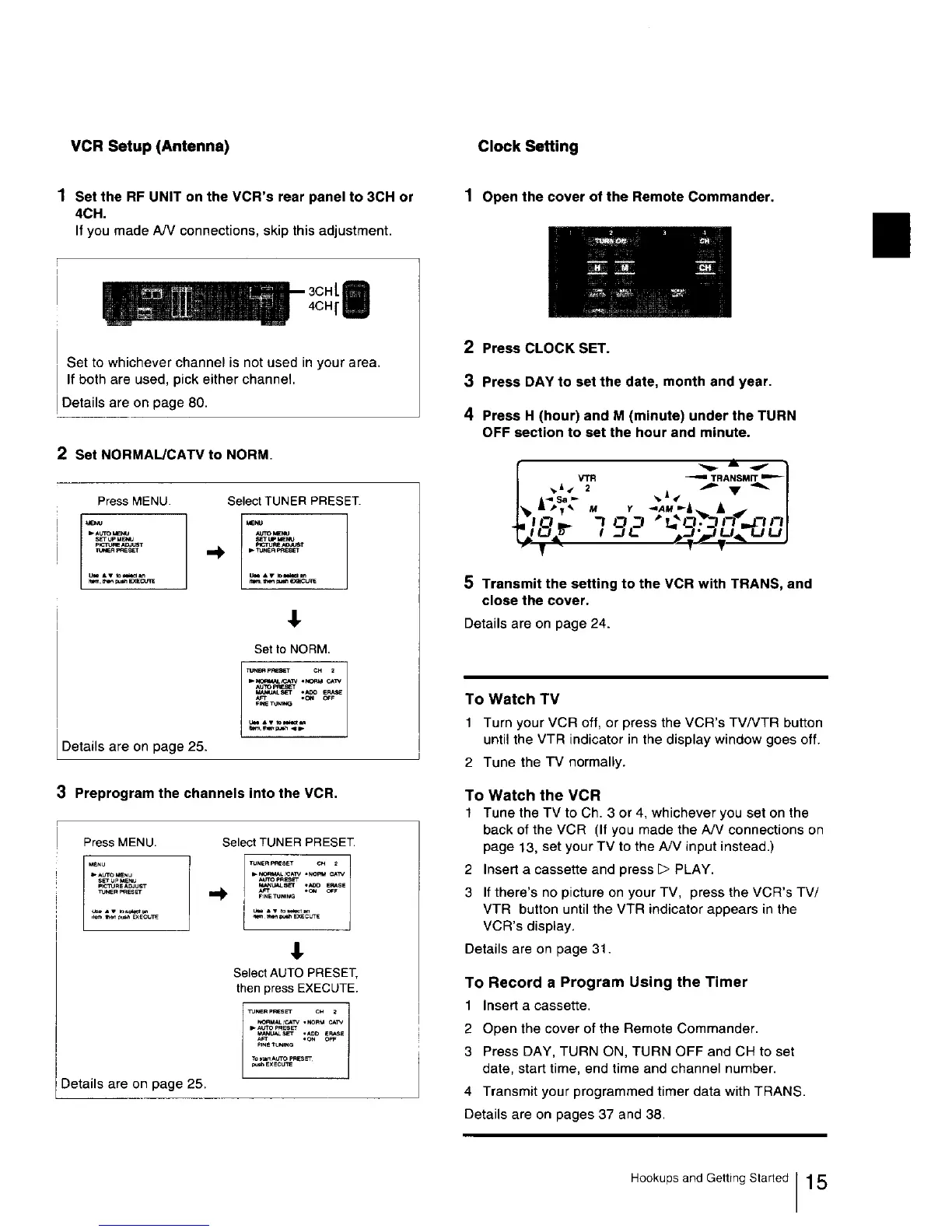 Sony EV-S3000 - VCR Setup; Clock Setting; To Watch TV; To Watch the VCR