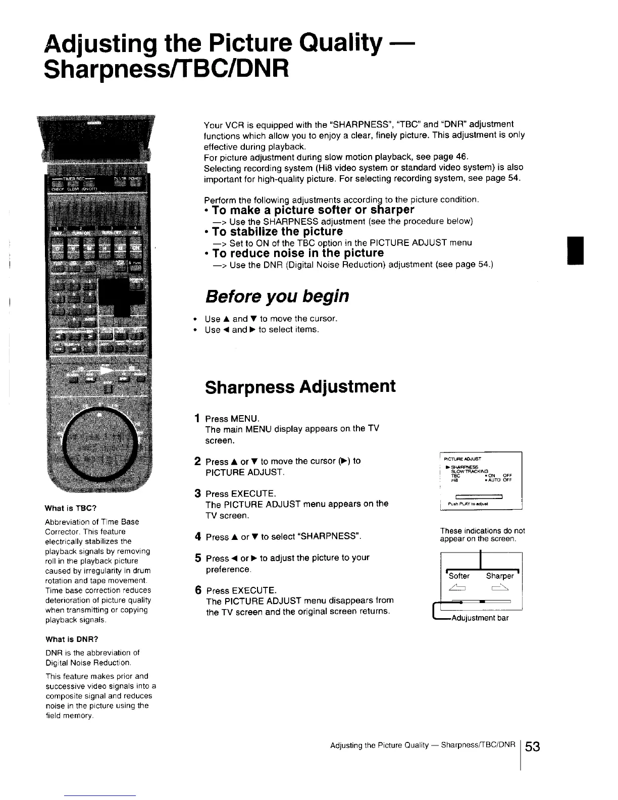 Sony EV-S3000 - Adjusting the Picture Quality; Sharpness Adjustment