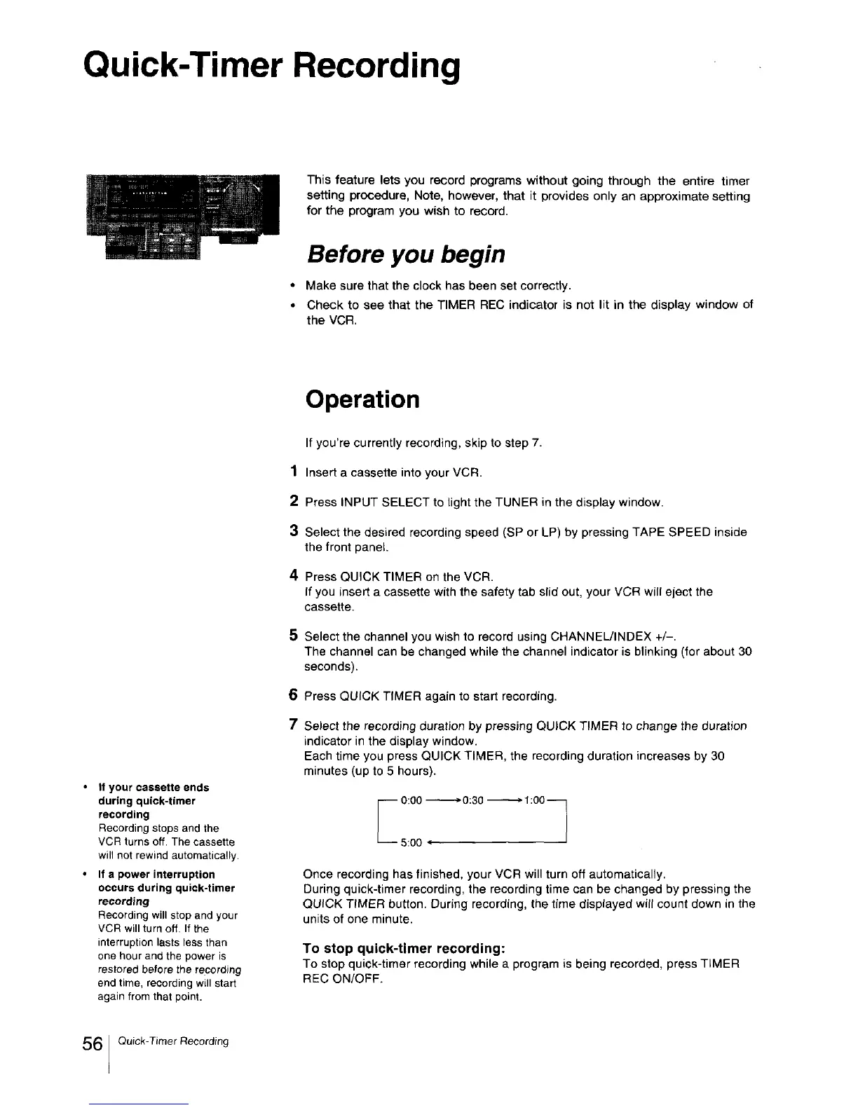 Sony EV-S3000 - Quick-Timer Recording; Operation