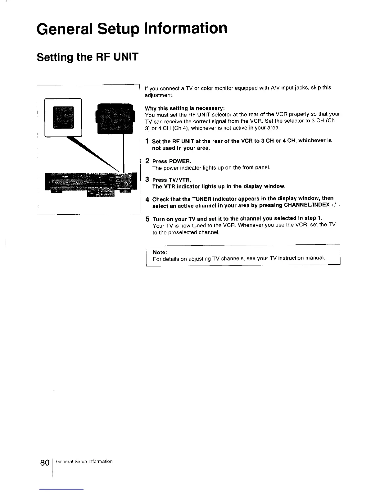 Sony EV-S3000 - General Setup Information; Setting the RF Unit