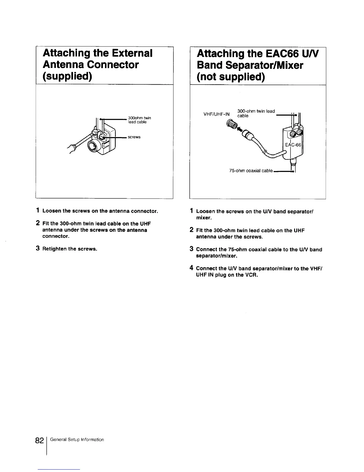 Sony EV-S3000 - Attaching the External Antenna Connector; Attaching the EAC66 U;V Band Separator;Mixer
