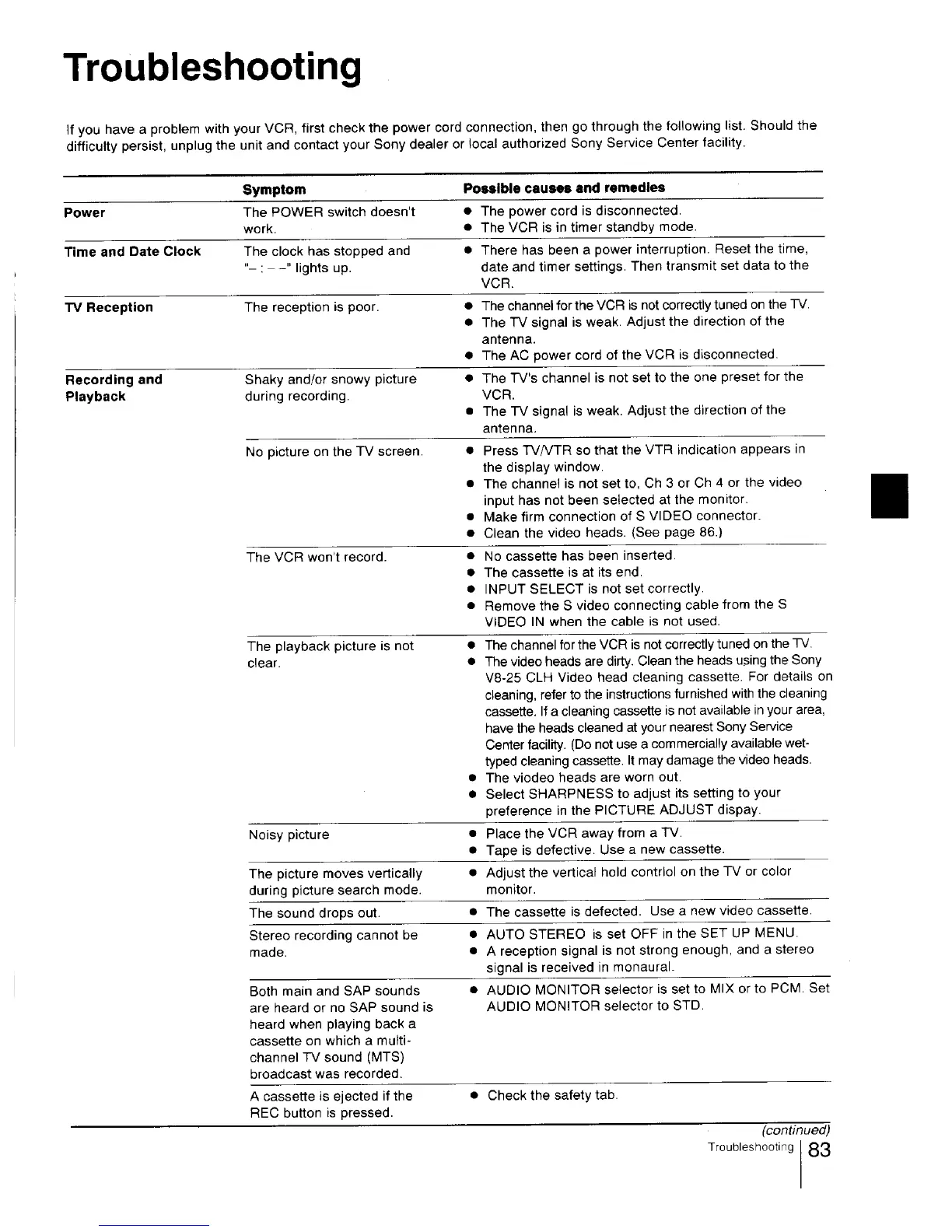 Sony EV-S3000 - VCR Troubleshooting Guide