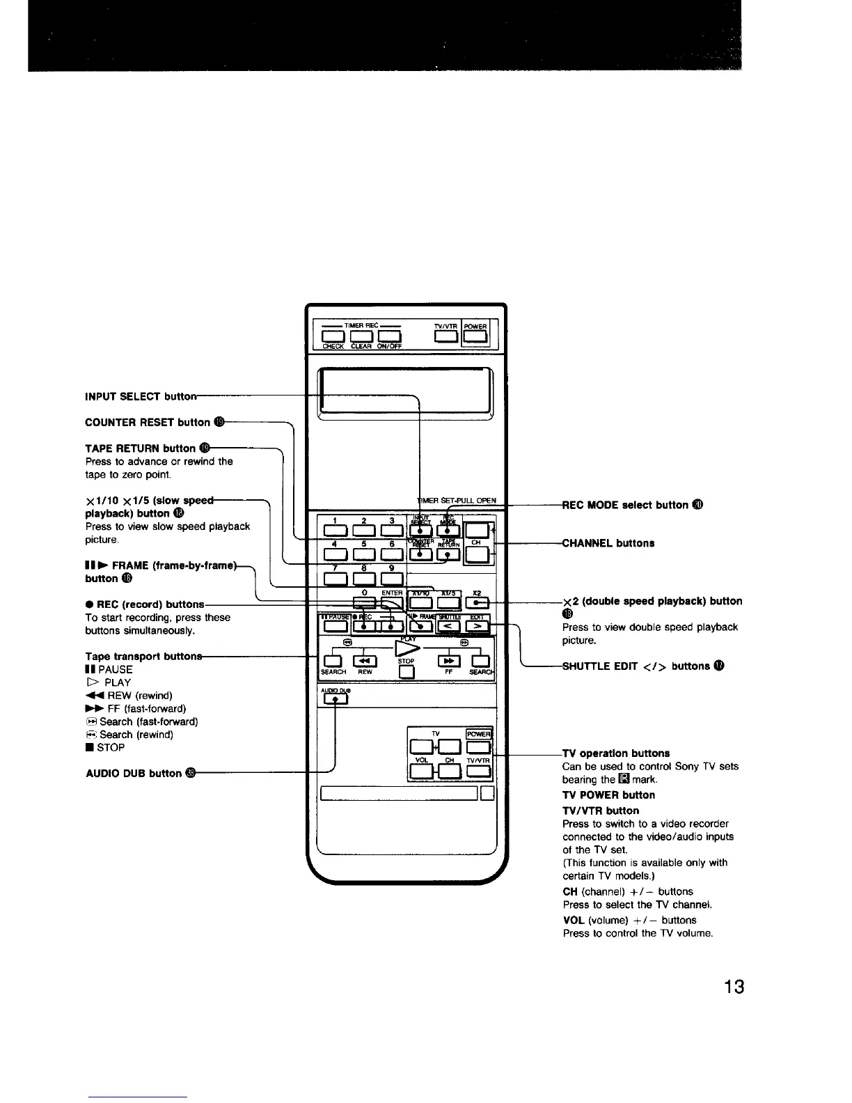 Sony EV-S550 - Device Layout and Controls; Remote Commander Functions