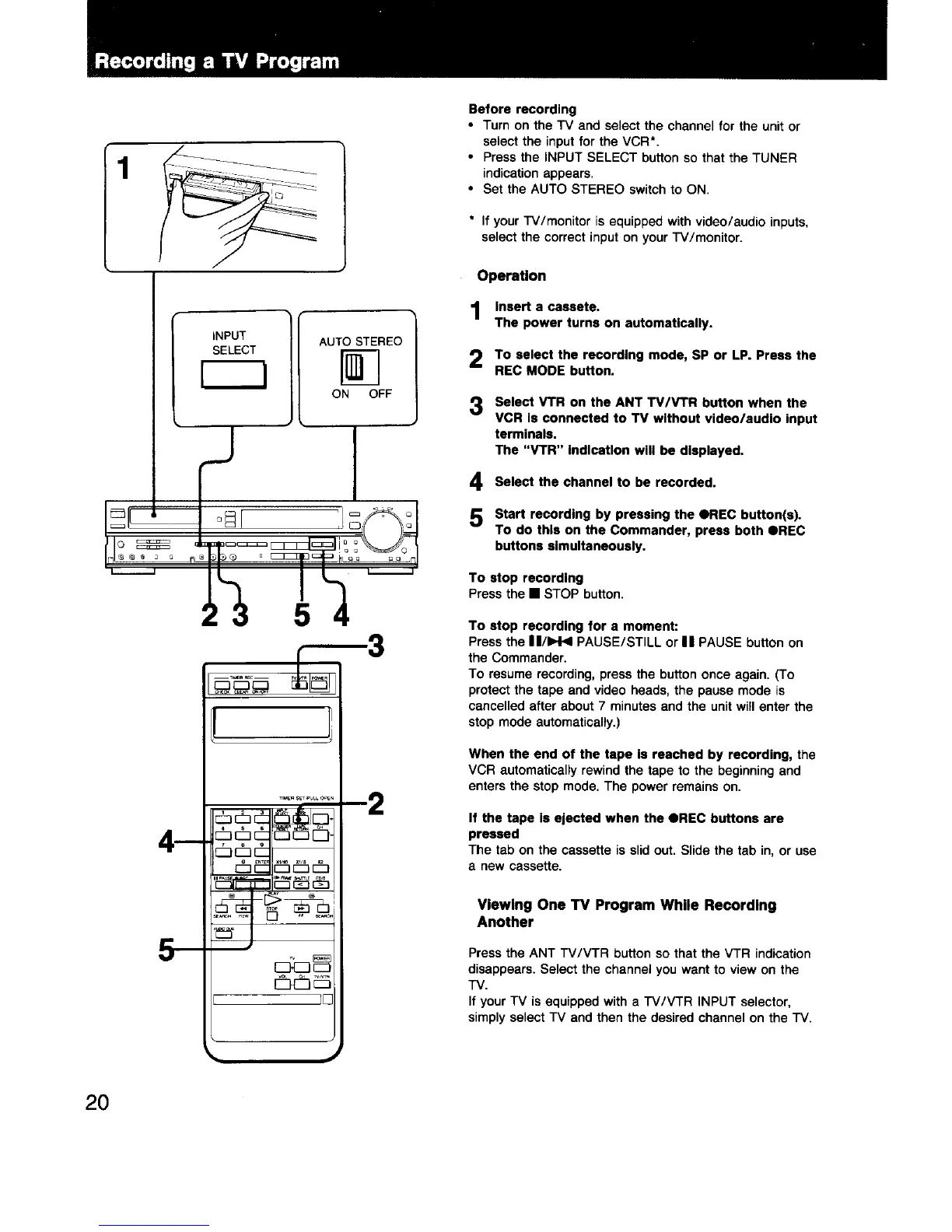 Sony EV-S550 - Recording a TV Program