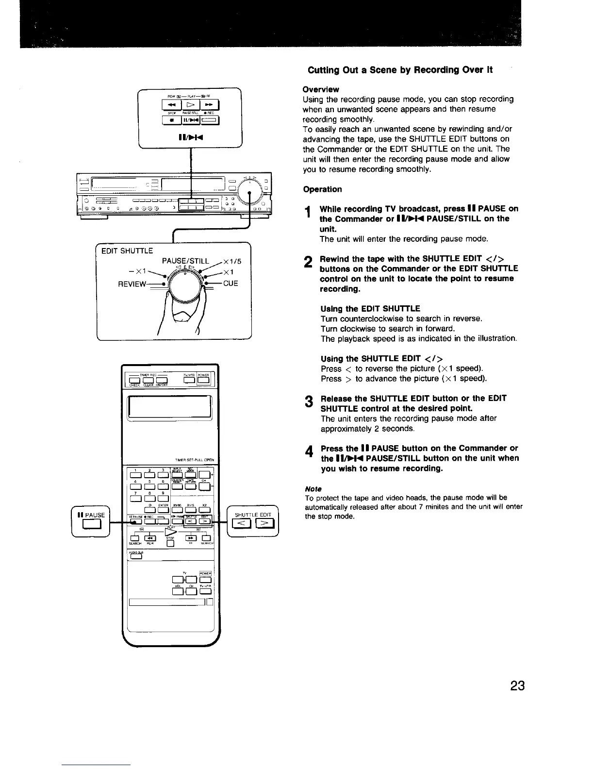 Sony EV-S550 - Cutting out a Scene by Recording over It; Using the EDIT SHUTTLE