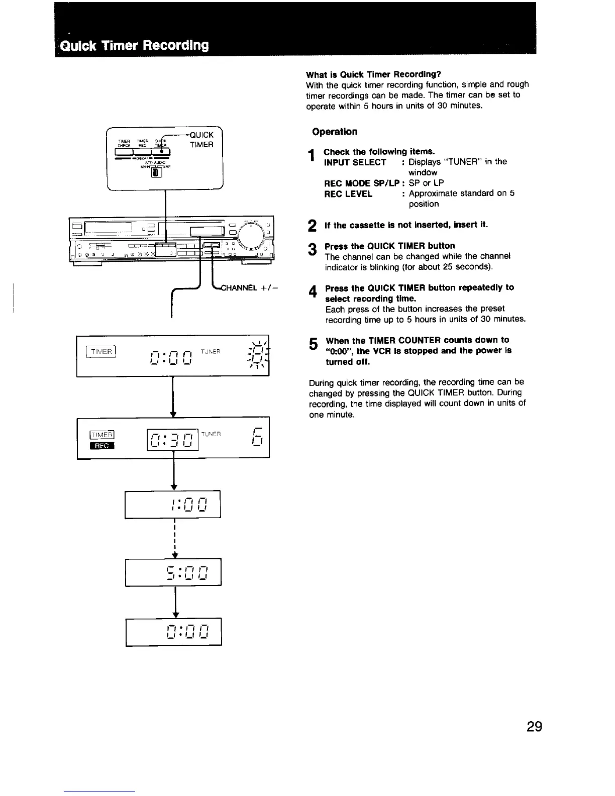 Sony EV-S550 - Quick Timer Operation Guide
