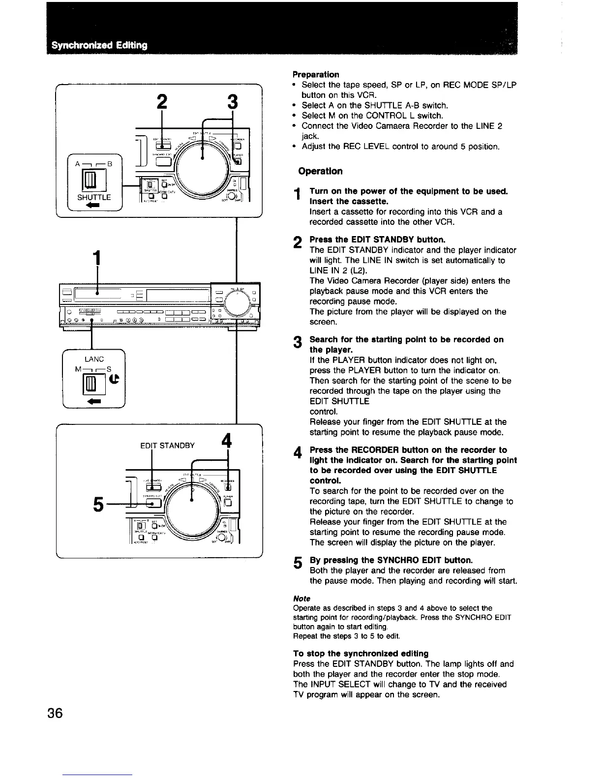 Sony EV-S550 - Synchronized Editing; Synchronized Editing Steps