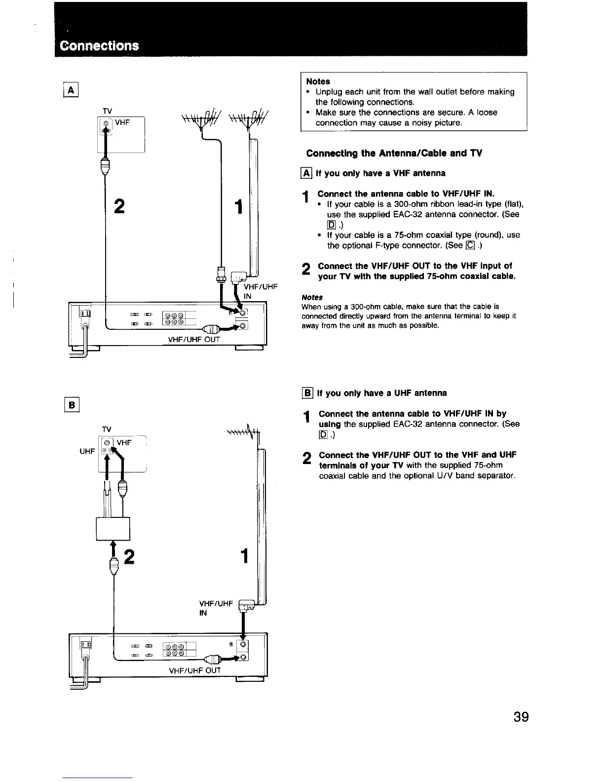 Sony EV-S550 - Antenna and TV Connections
