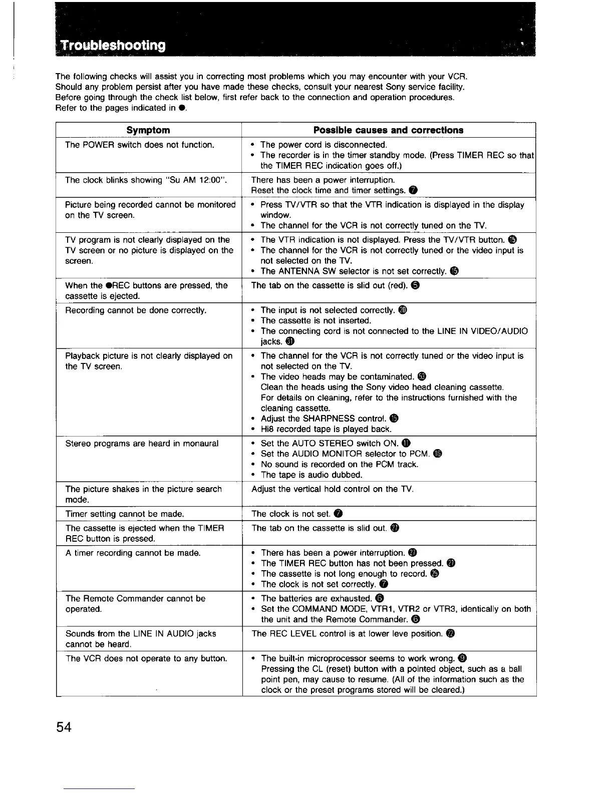 Sony EV-S550 - Troubleshooting Common Issues; Problem Diagnosis and Solutions