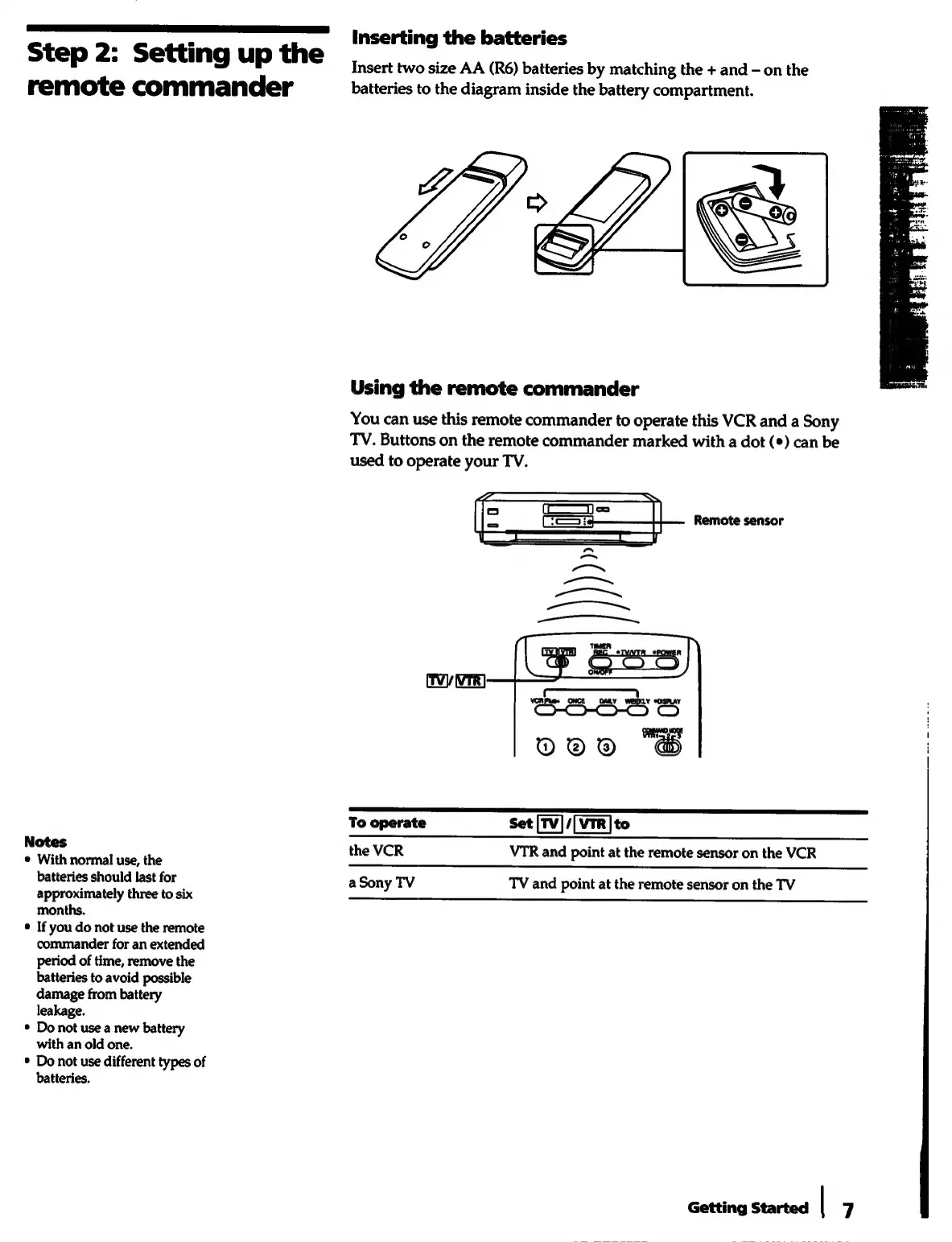 Sony EV-S7000 - Step 2: Setting up the remote commander