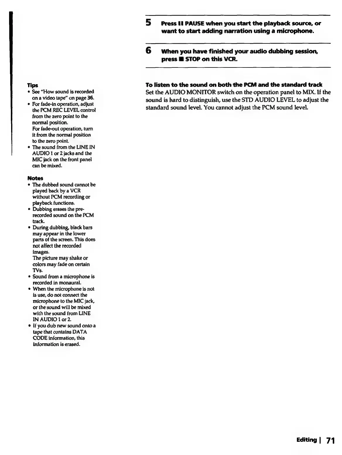 Sony EV-S7000 - Editing (continued); Audio dubbing (continued)