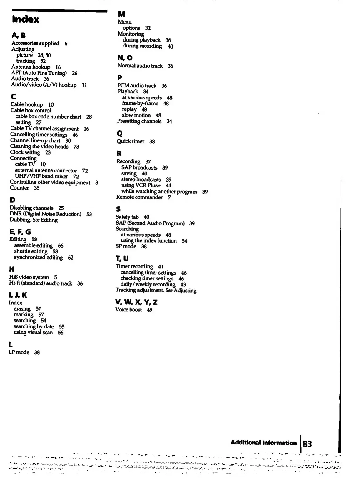 Sony EV-S7000 - Index