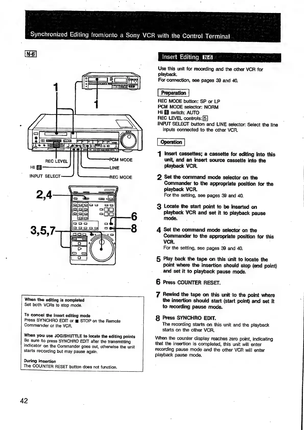 Sony EV-S900 - Synchronized Editing with Control Terminal; Insert Editing Operation