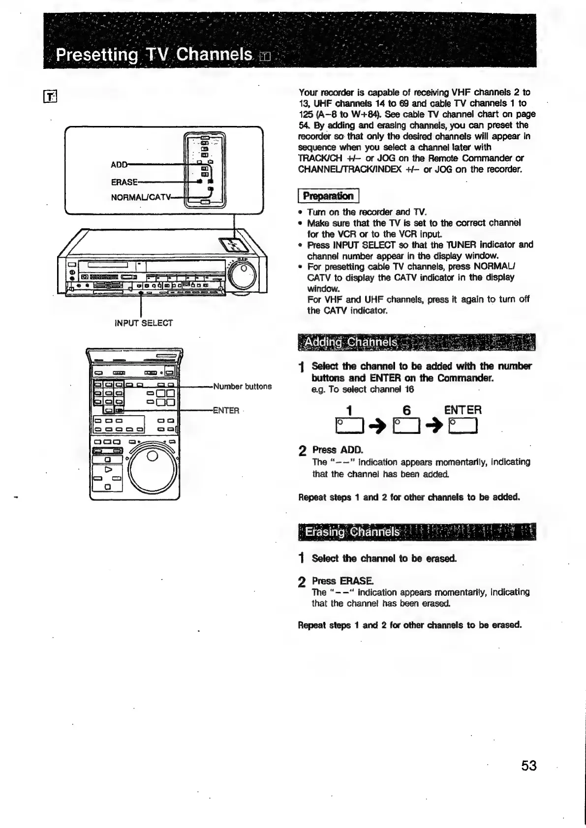 Sony EV-S900 - Preparation for Channel Presets; Adding and Erasing Channels