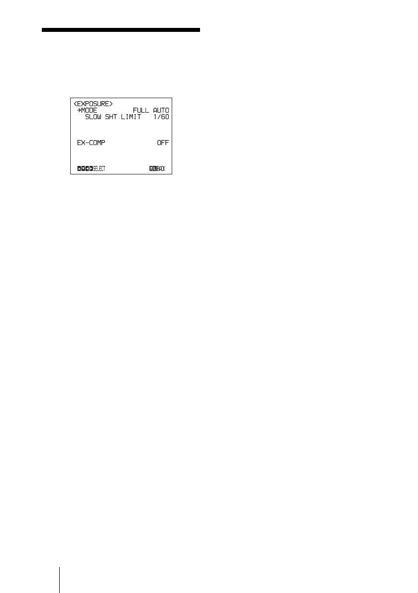 The EXPOSURE menu is used to set the