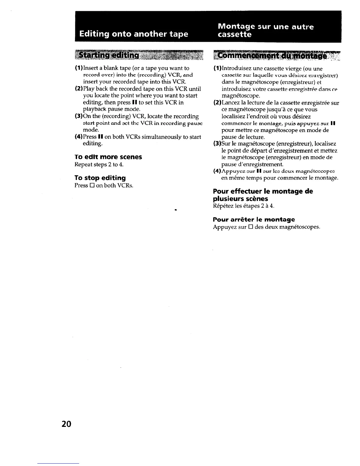 Sony EVO-250 - Starting Editing; To Edit more Scenes; To Stop Editing
